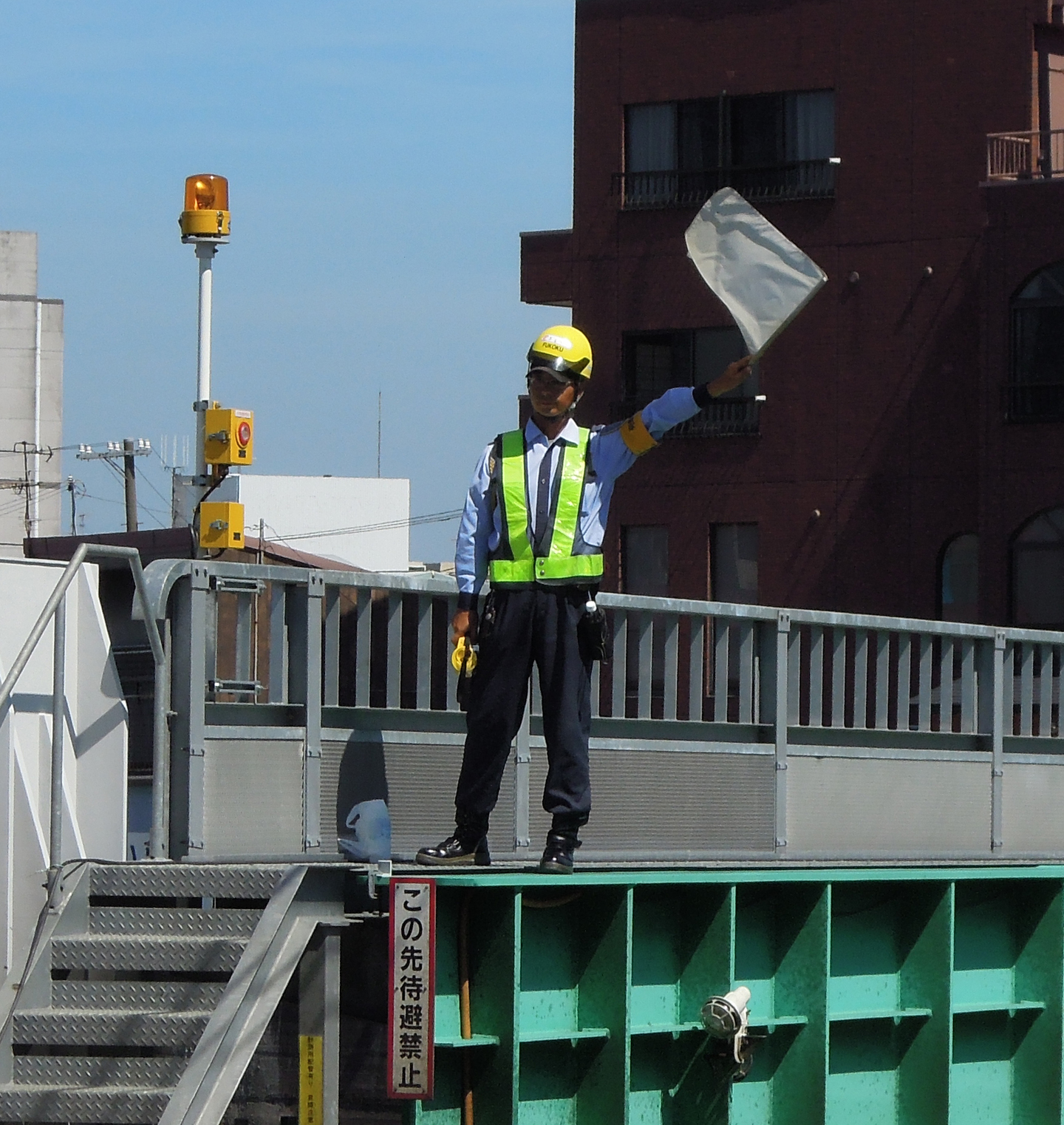 鉄道駅ホーム・軌道内工事・線路近接工事において、専門の講習を受講した警備員が列車の接近を監視し、鉄道のスムーズな運行と工事関係者の安全を守る業務です。